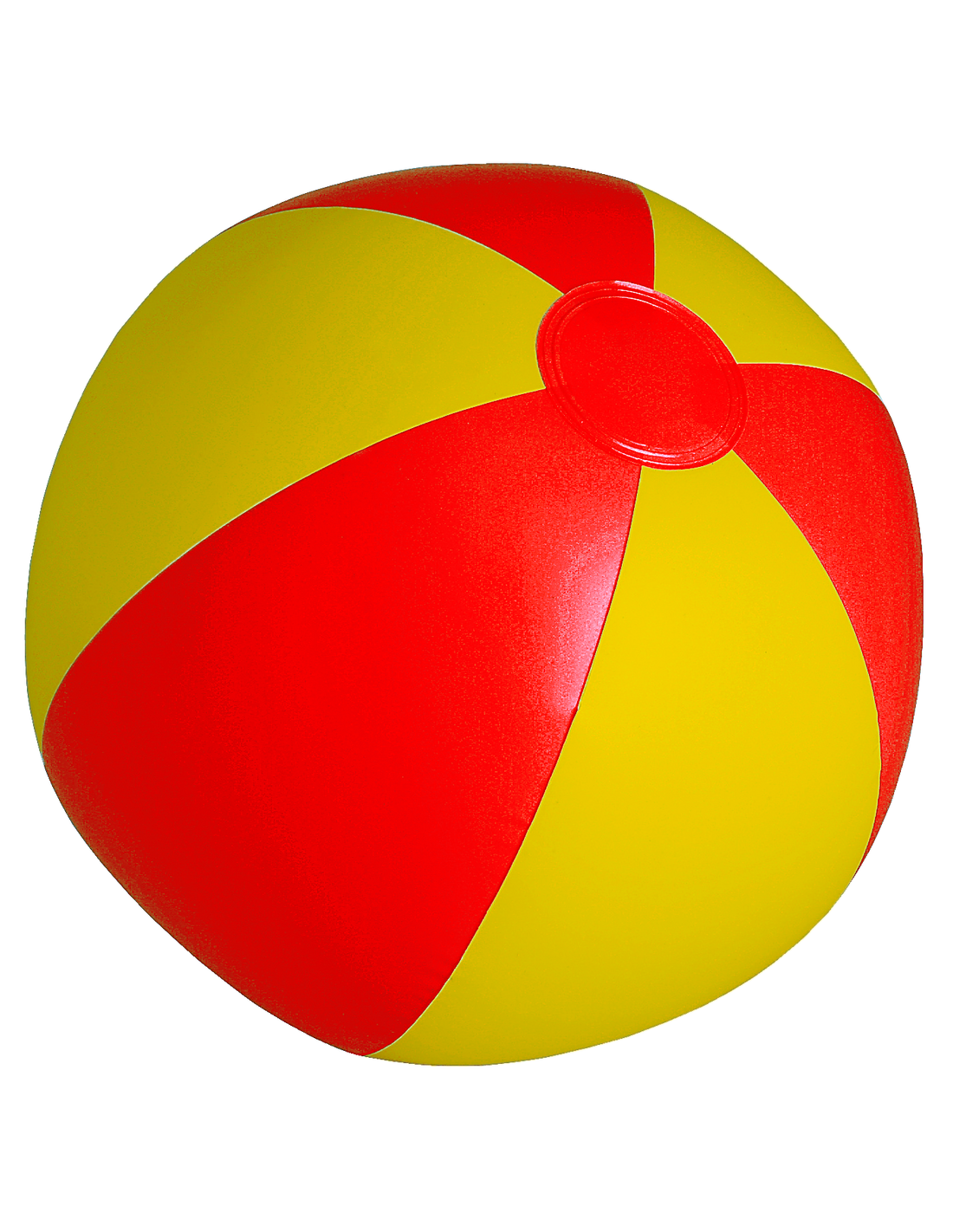 Balón inflable de PVC en variada gama de vivos colores. Disponible en diseños monocolor y bicolor.