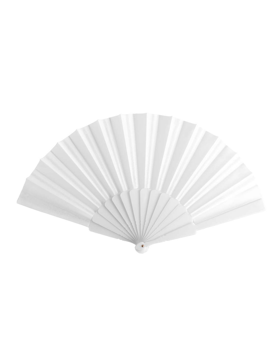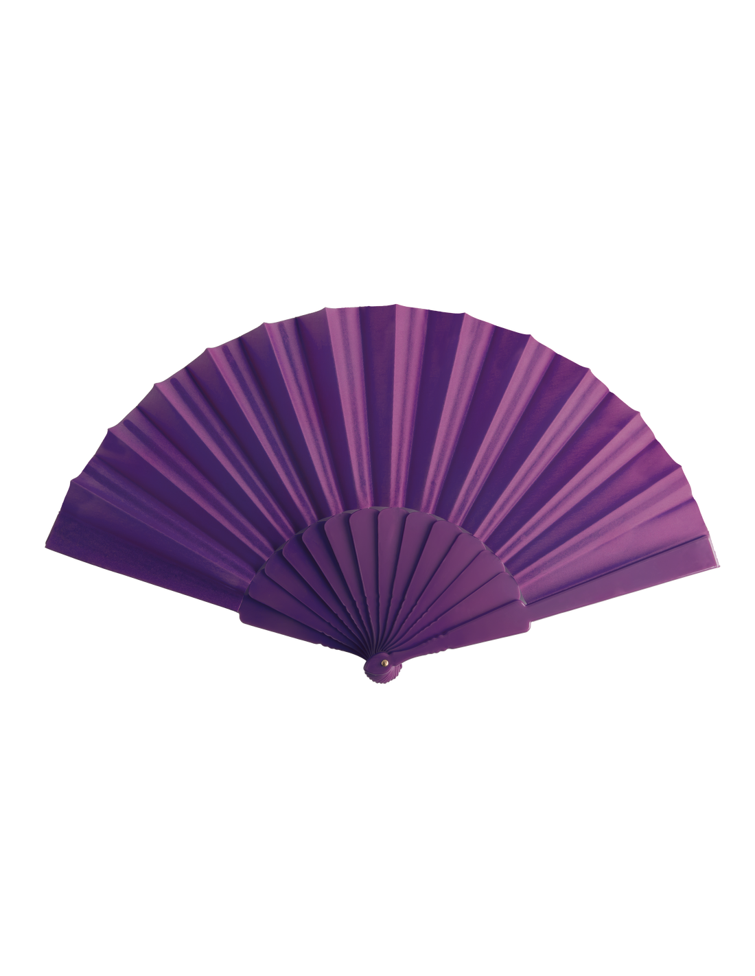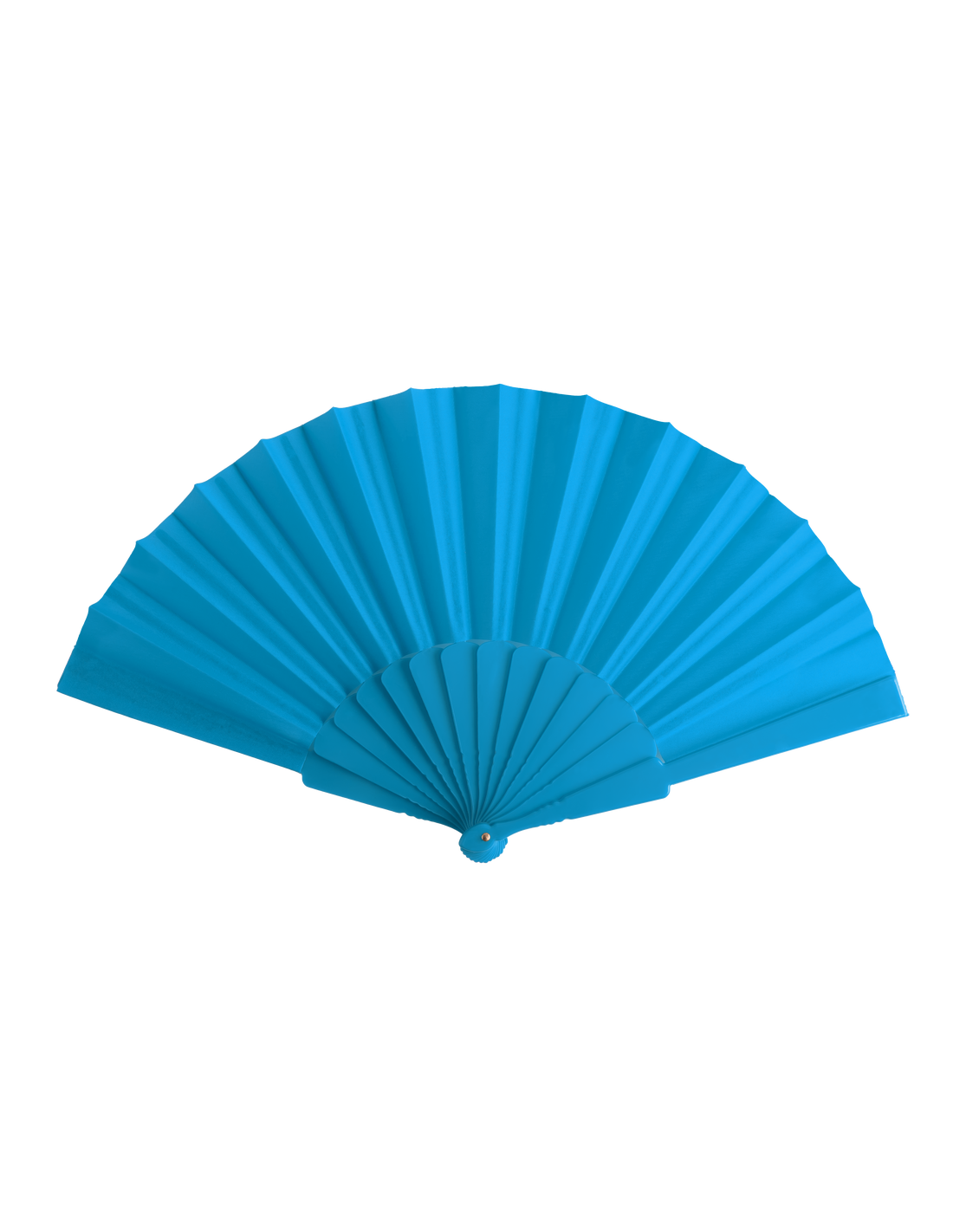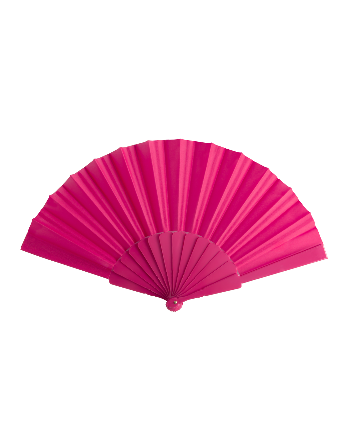 Abanico con varillas fabricadas en resistente plástico y tela en poliéster. Varillas y tela a juego, disponible en variada gama de colores. Presentado en caja individual blanca con ventana.