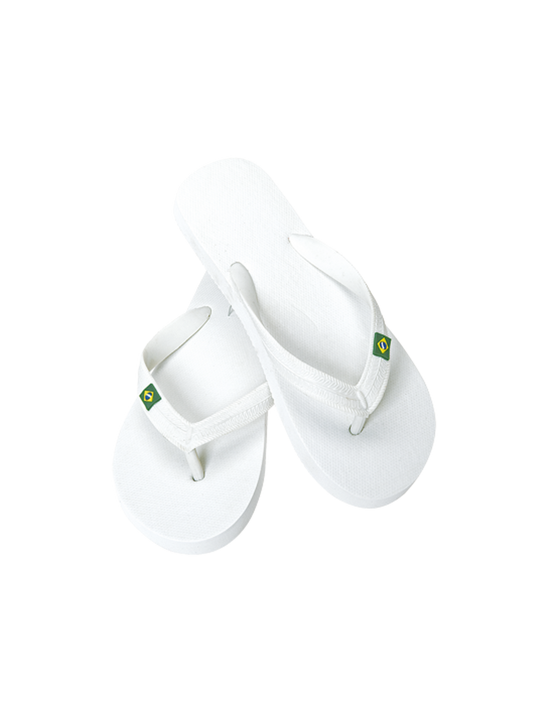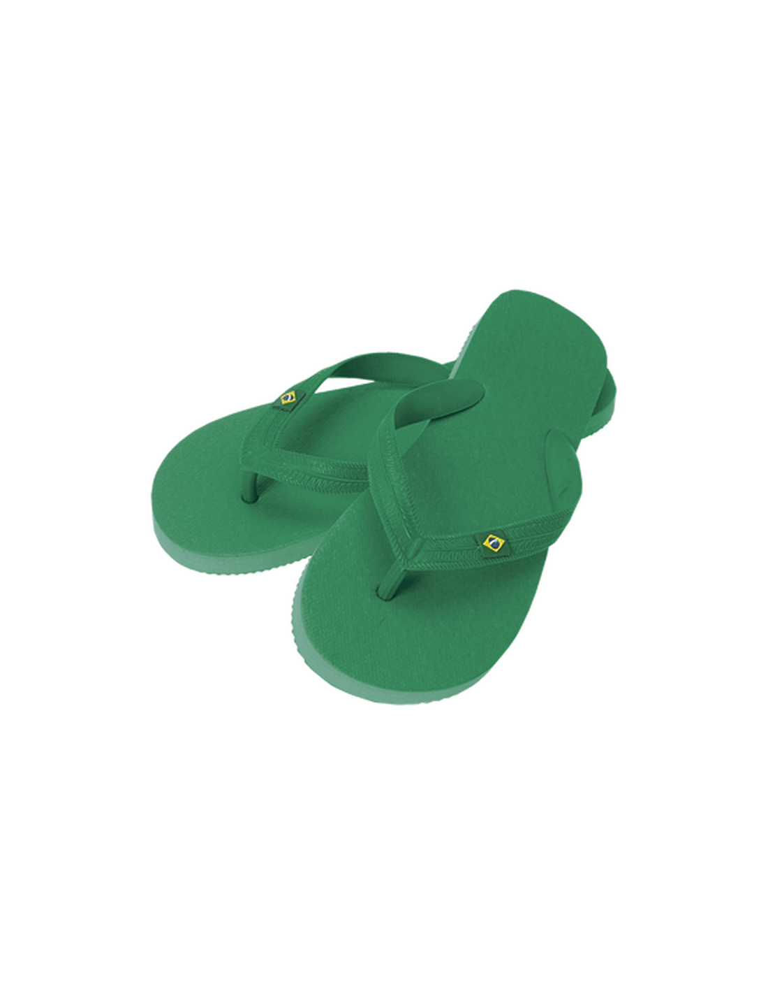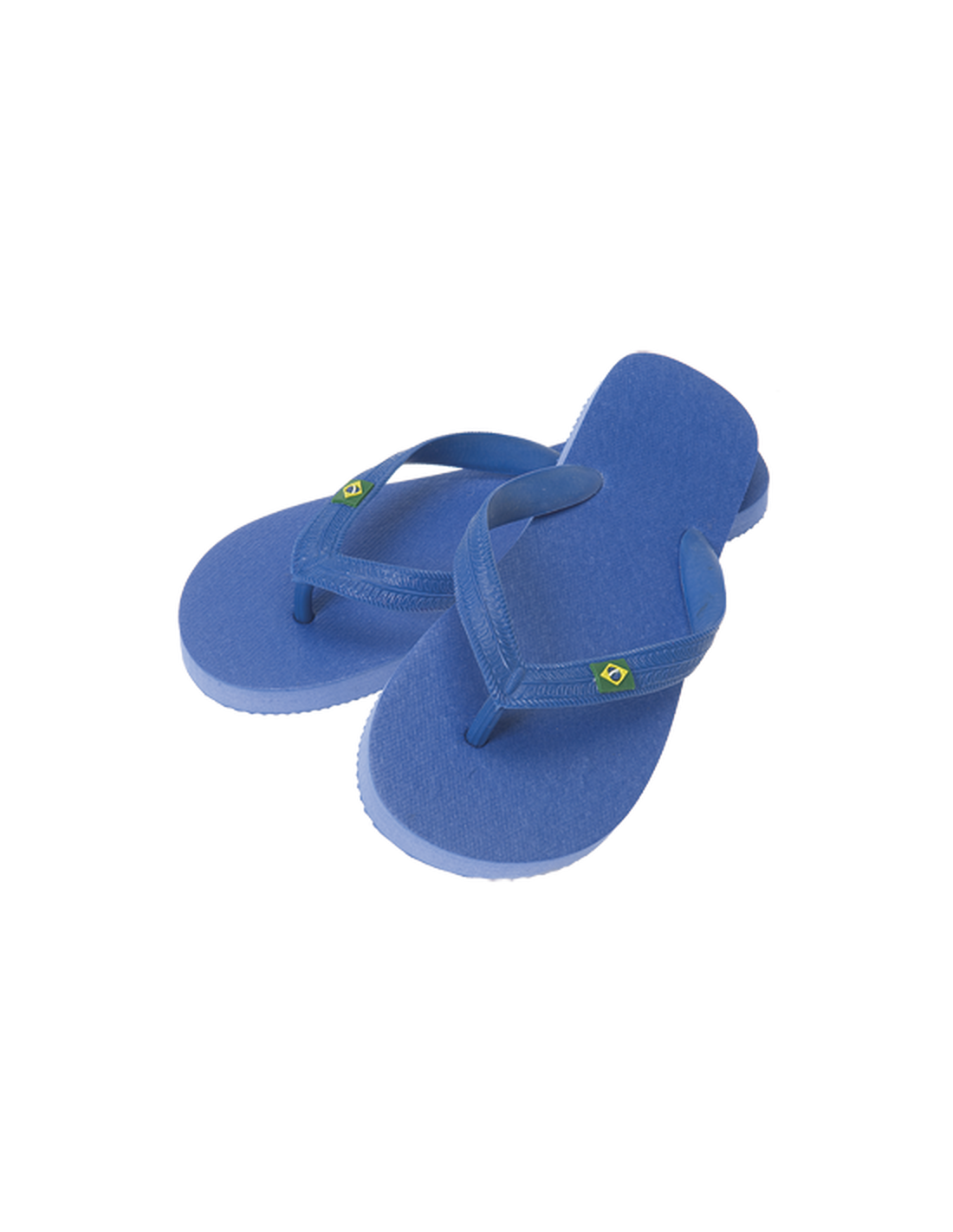 Par de chanclas con suela en resistente EVA y tira de PVC a juego con banderita brasileira. En variada gama de vivos colores y disponibles en tallas 36-38, 42-44.