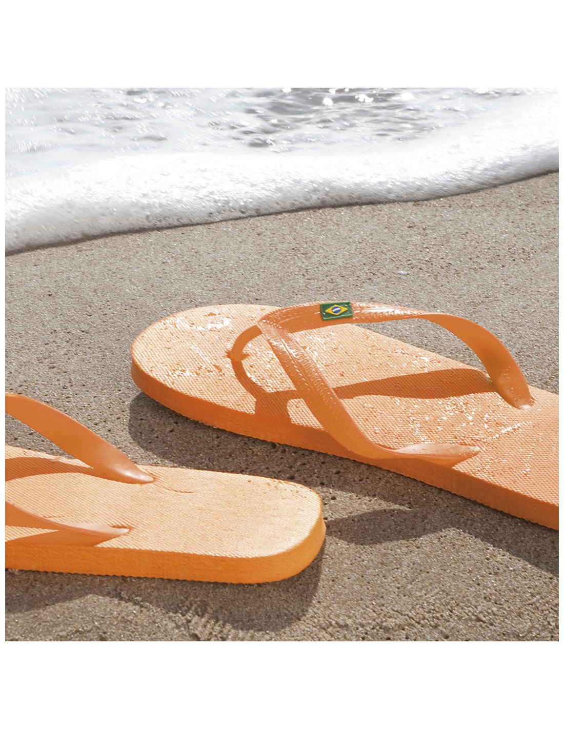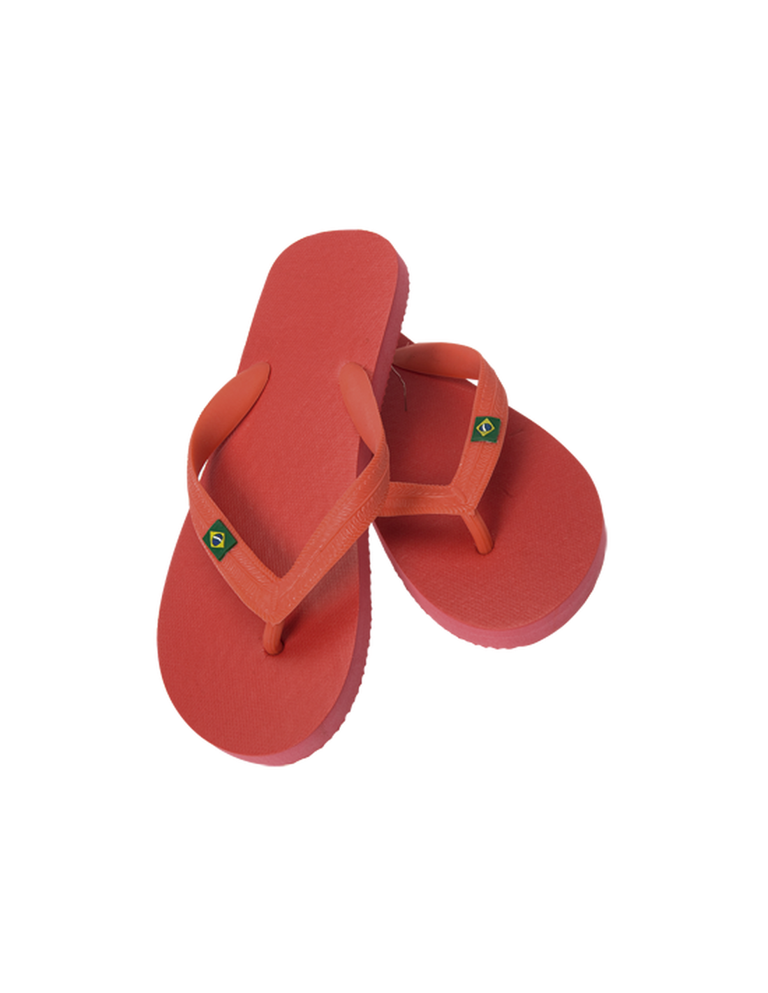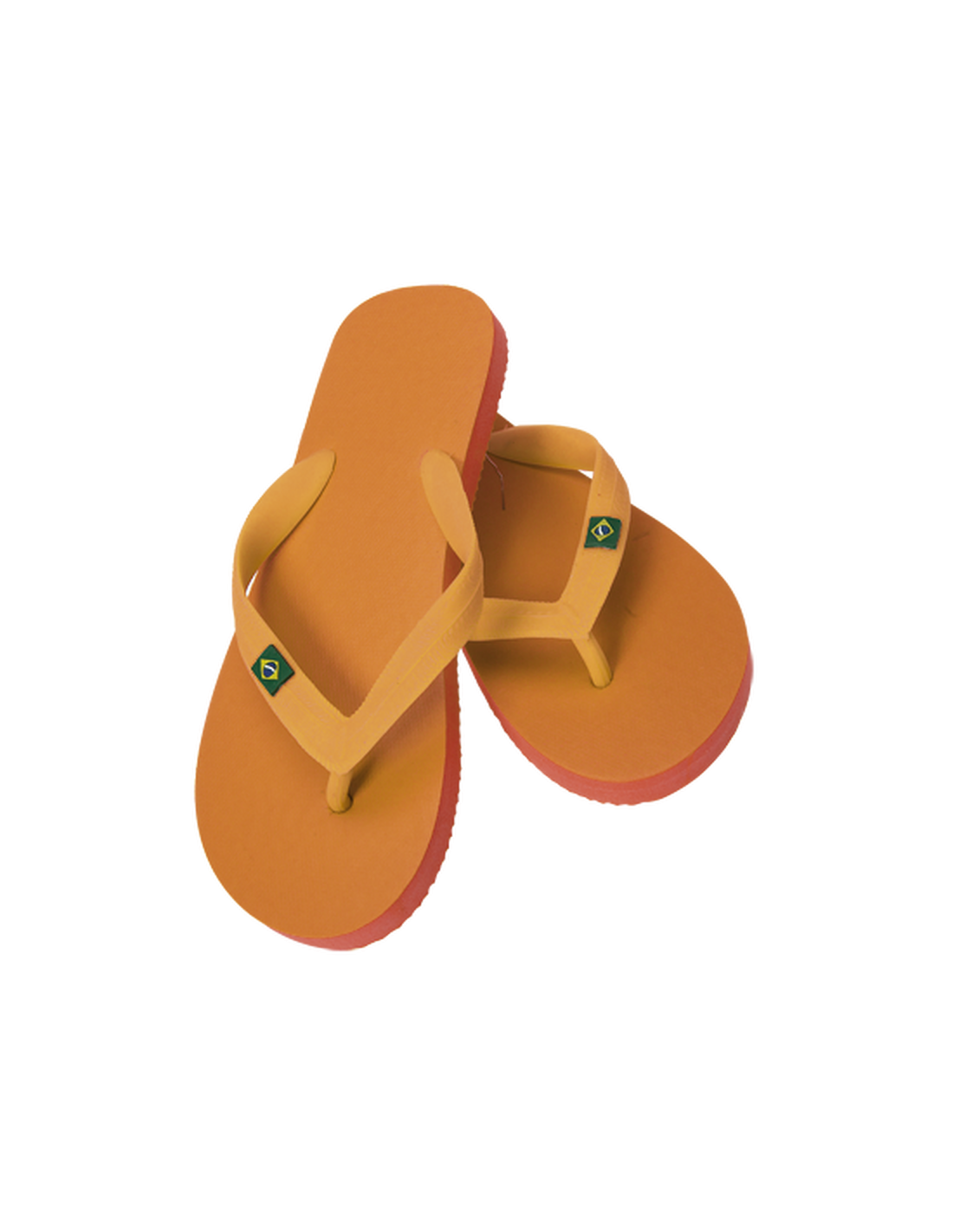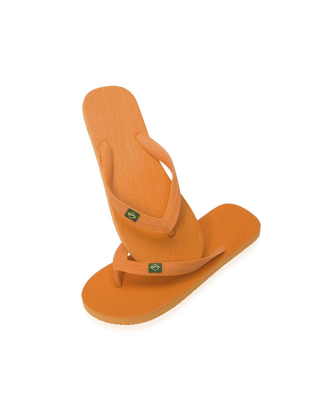 Par de chanclas con suela en resistente EVA y tira de PVC a juego con banderita brasileira. En variada gama de vivos colores y disponibles en tallas 36-38, 42-44.
