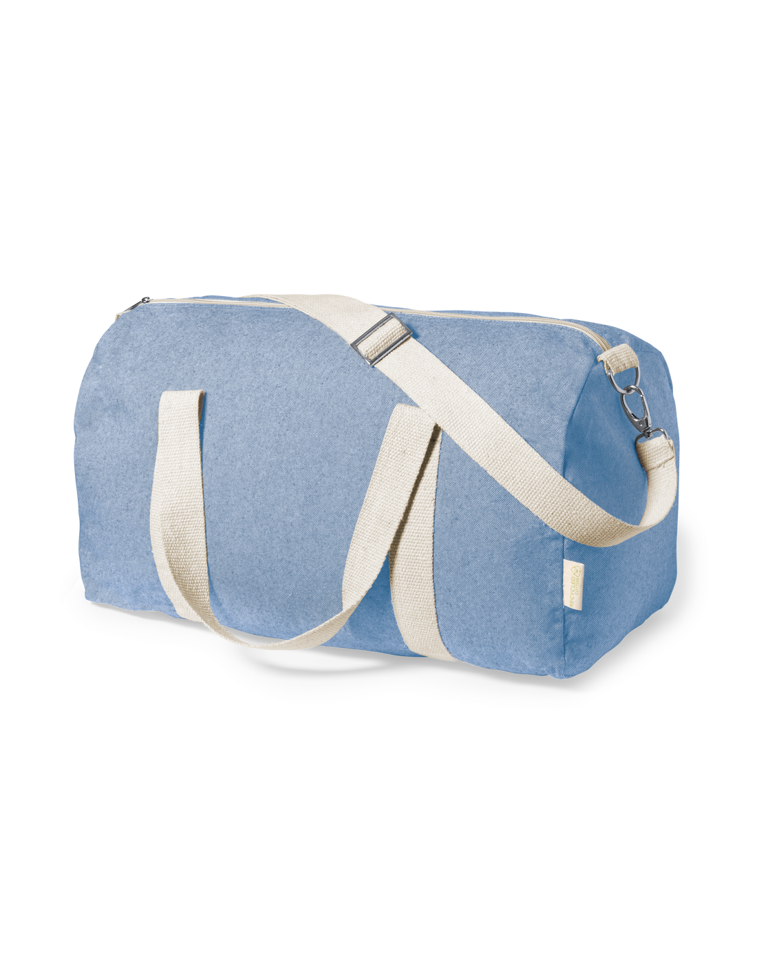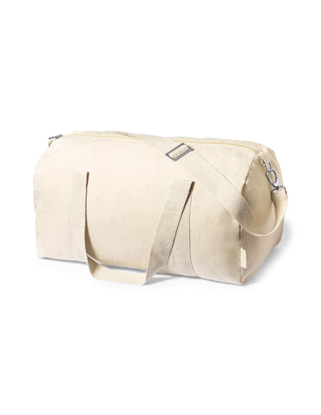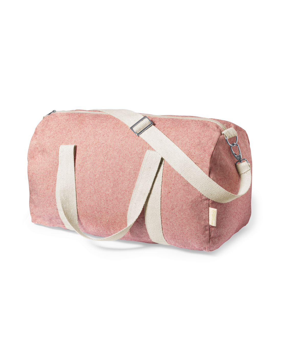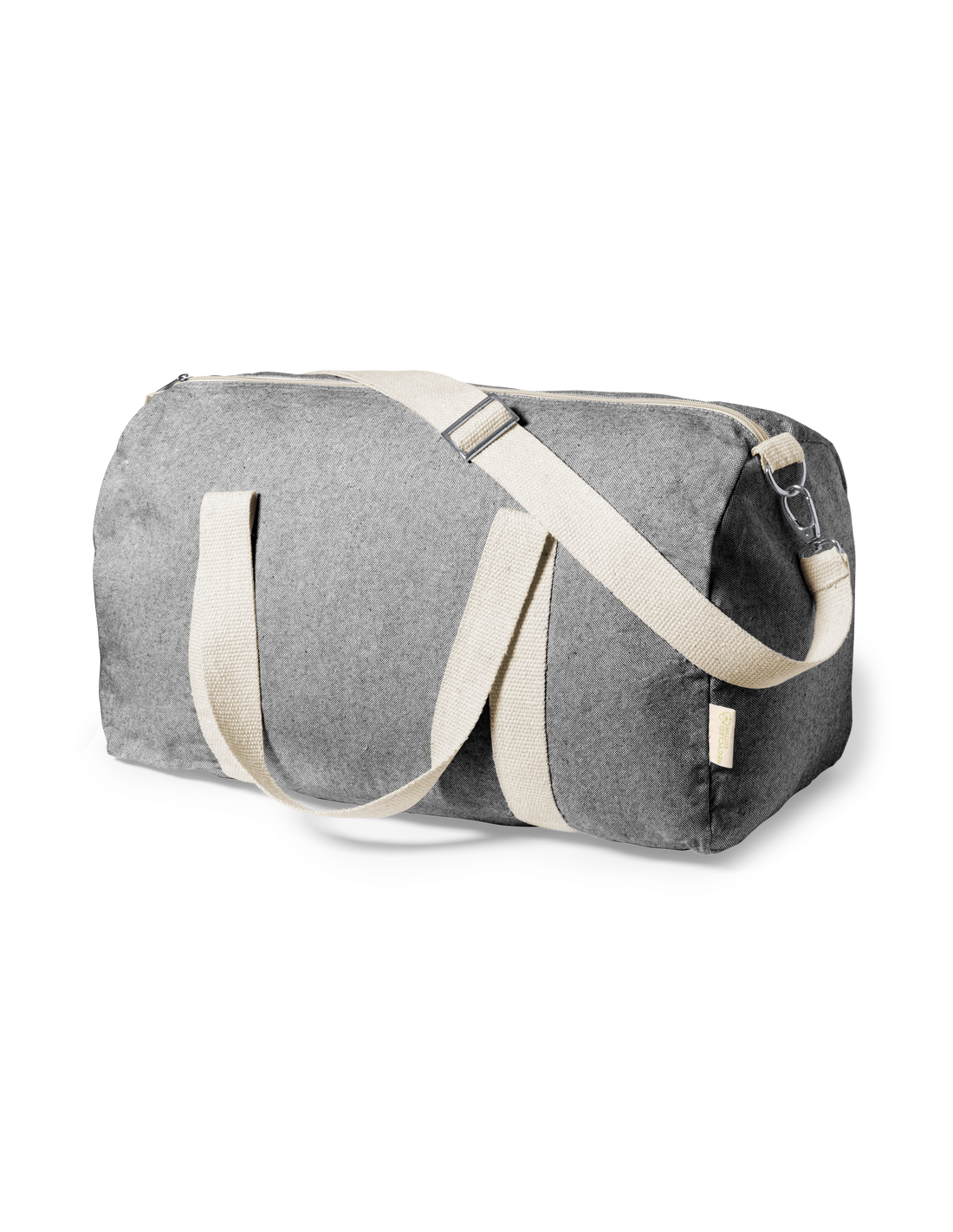 Práctico bolso de línea nature fabricado en algodón 100% reciclado GRS de 275g/m2. Con prácticas y resistentes asas en color natural alrededor del bolso. Compartimento principal con cierre de cremallera y cinta para hombro ajustable con cierre de mosquetón. Disponible en variada gama de colores y con distintivo algodón reciclado en etiqueta exterior. Disponible certificación GRS (Global Recycled Standard / Estándar de Reciclaje Global), que garantiza el origen reciclado del material usado para fabricar el producto.