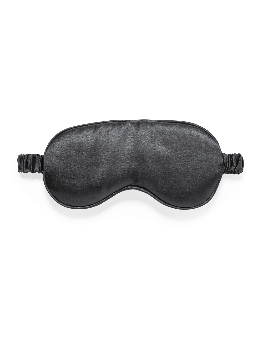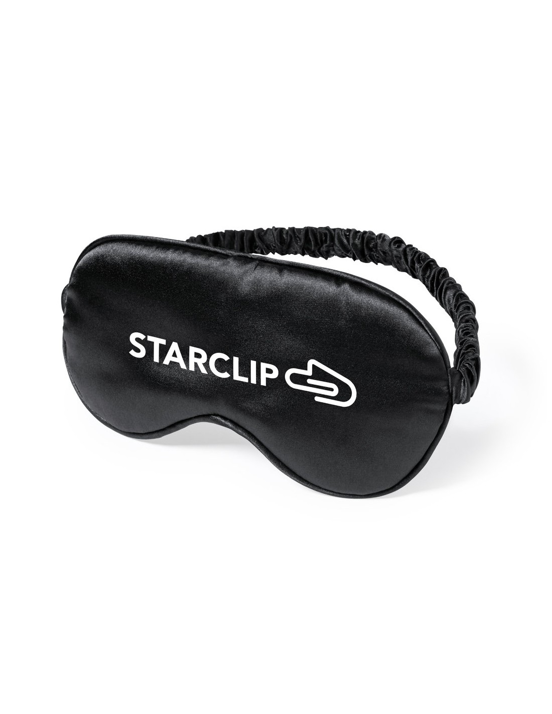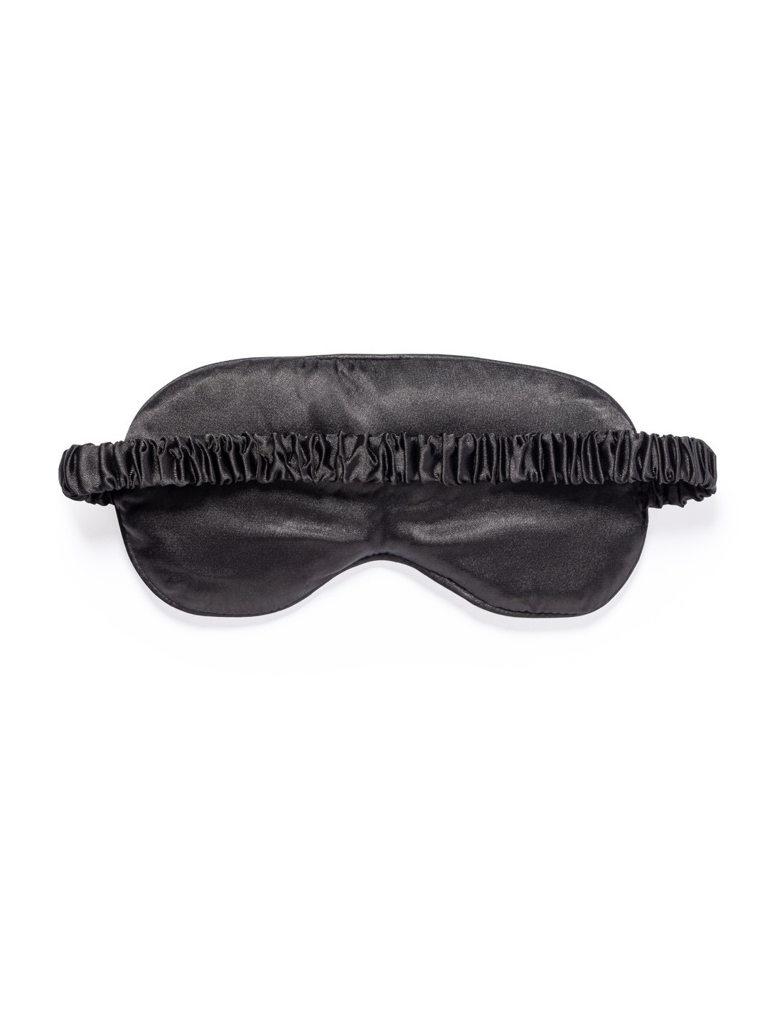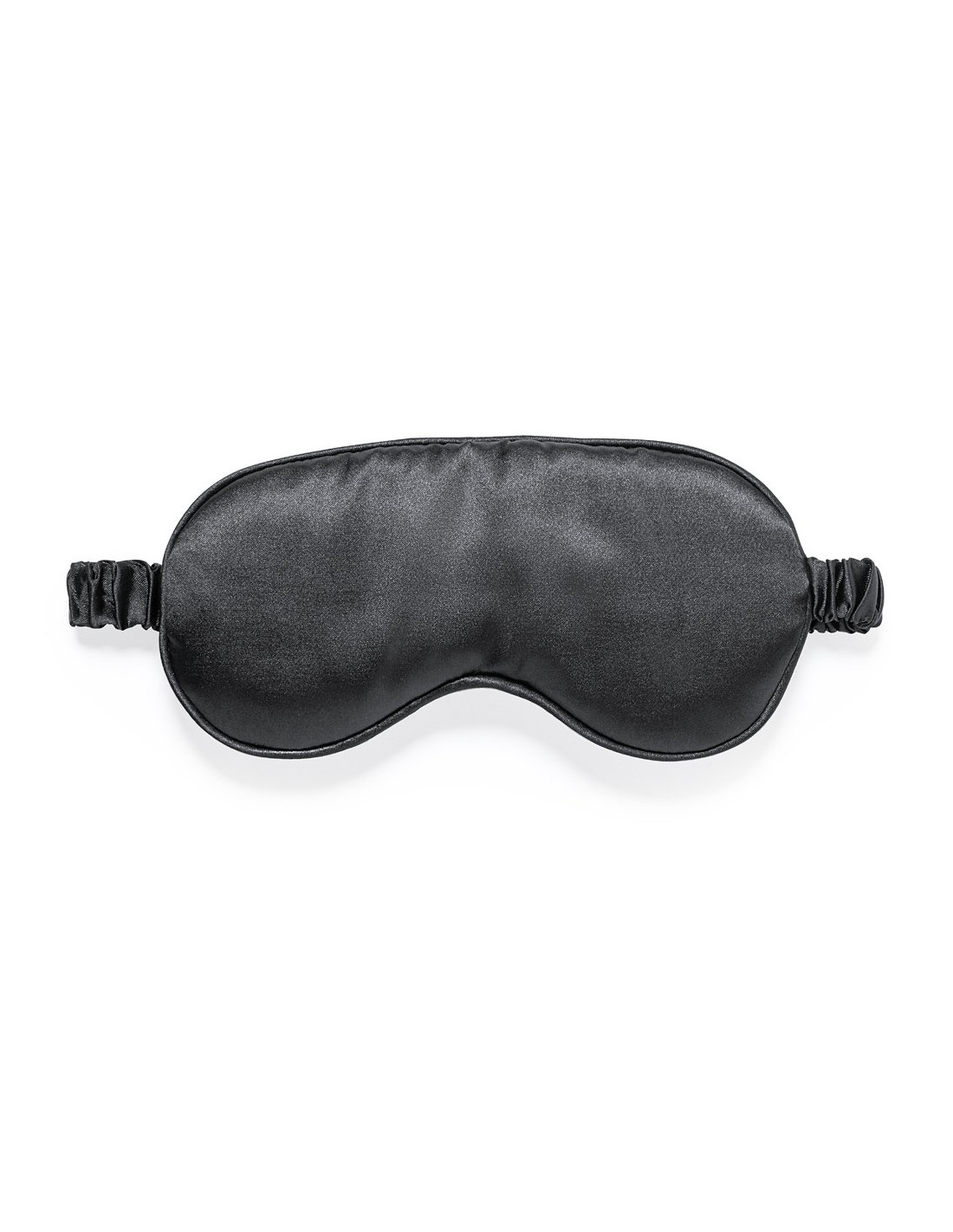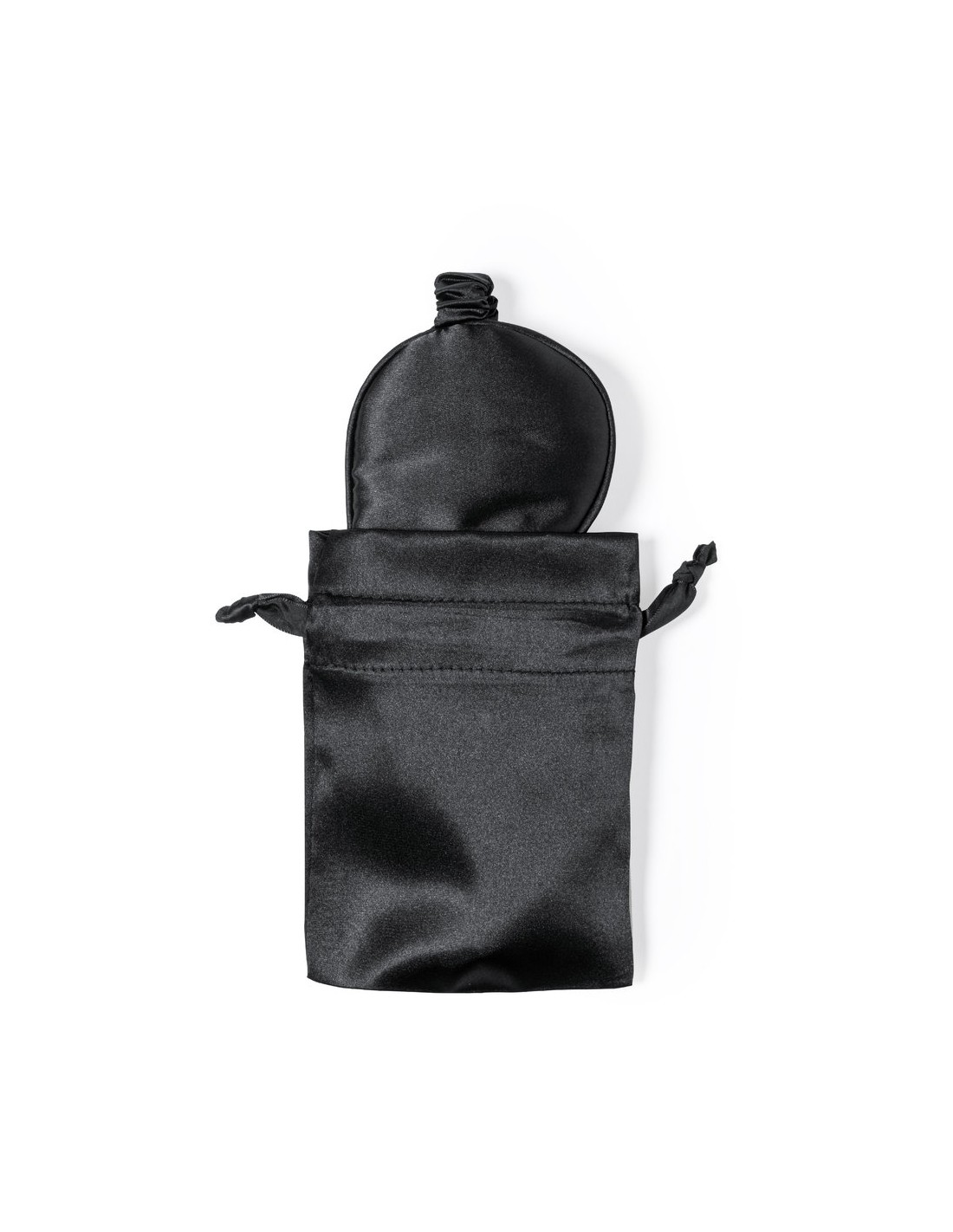 Antifaz de descanso en suave satén, con cinta elástica a juego. Presentado en bolsita individual de satén con cierre de cordón a juego.