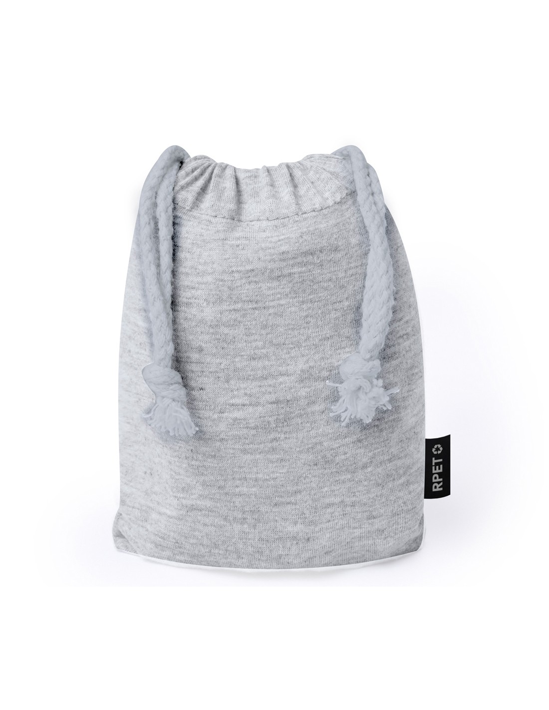 Estupendo set de viaje en suave poliéster. El conjunto incluye: Almohadilla ergonómica para cuello. Suave antifaz con cinta ajustable Zapatillas a conjunto. Fácil de guardar en la funda fabricada en RPET. Disponible en elegantes colores, con logotipo RPET en la funda.El material RPET se elabora a partir de plástico reciclado, para así fomentar la reutilización de residuos plásticos y ayudar a la sostenibilidad del planeta.