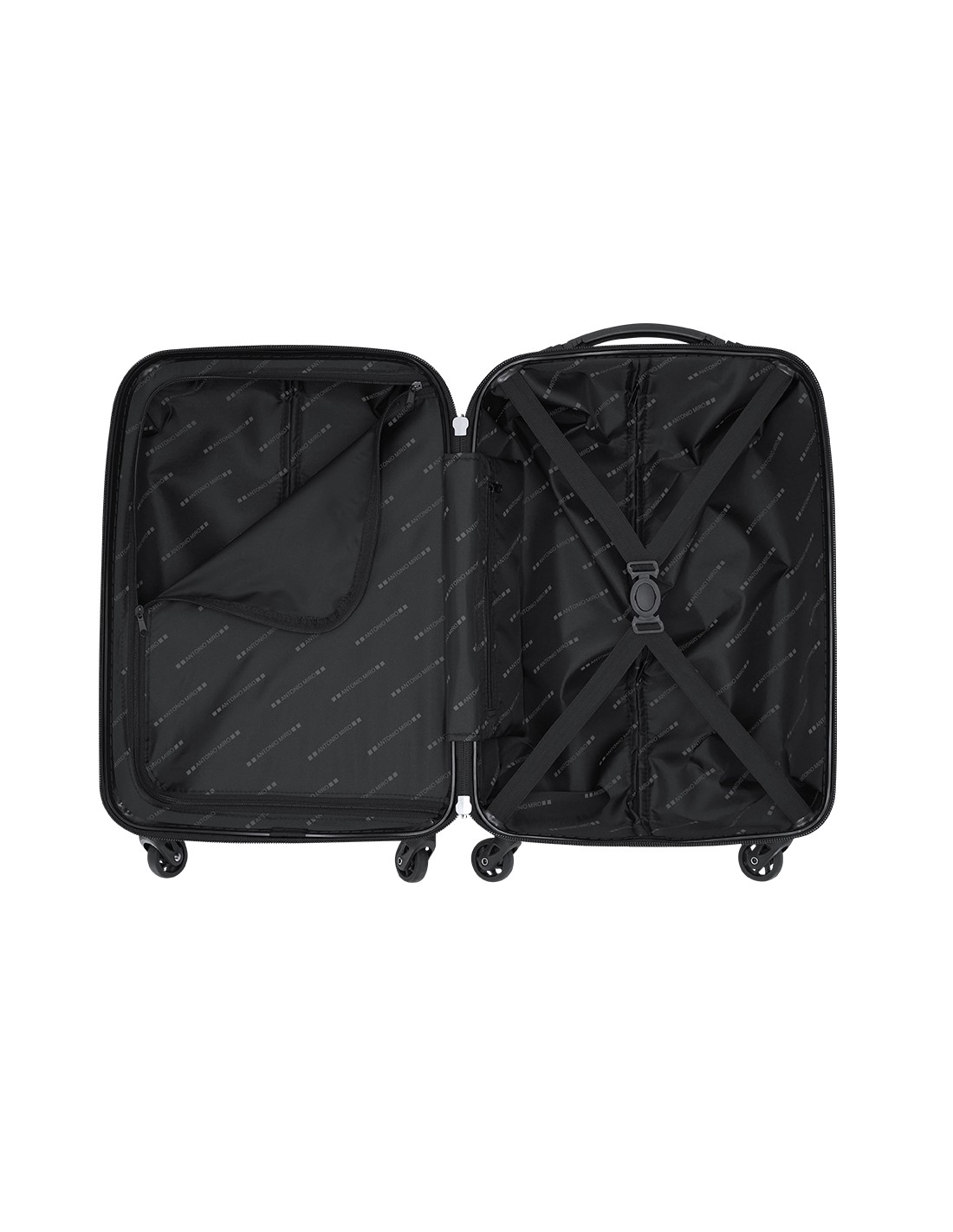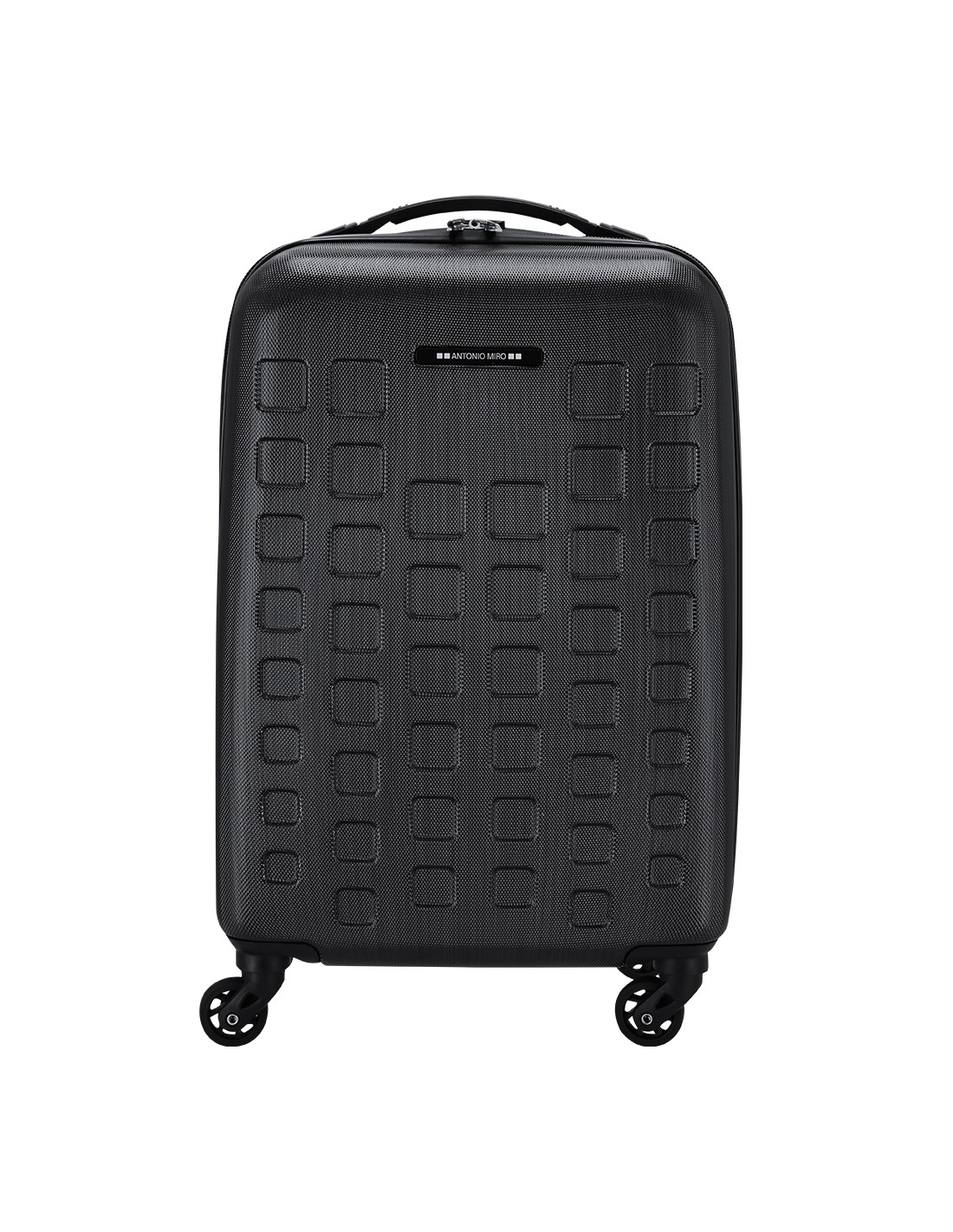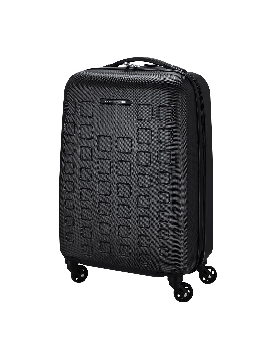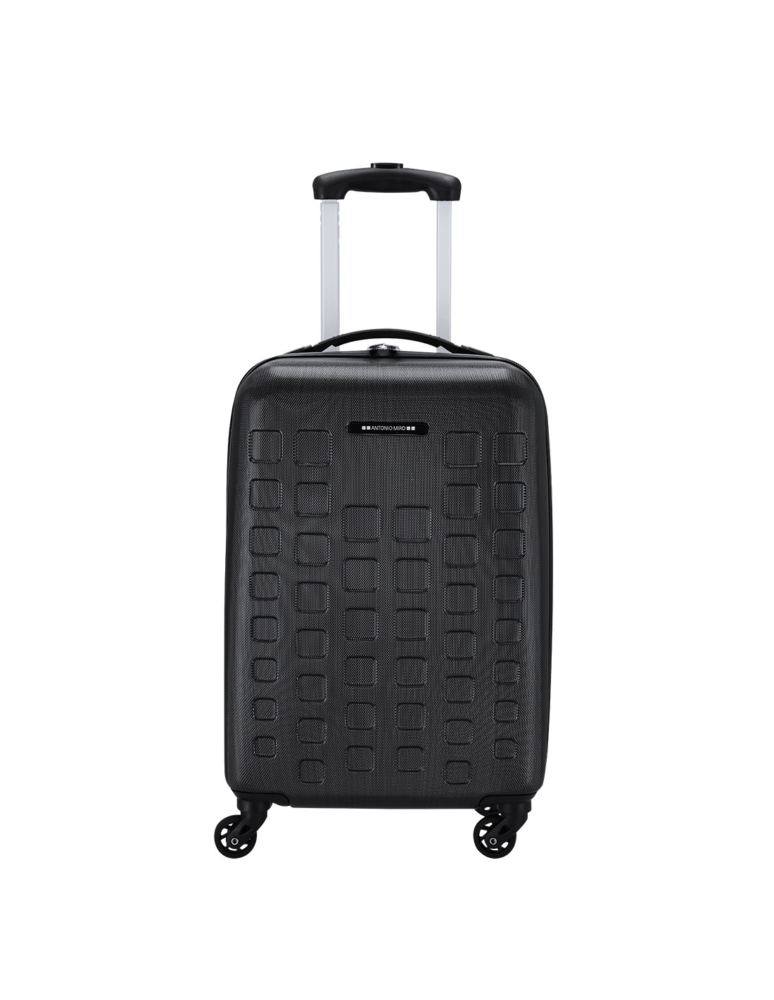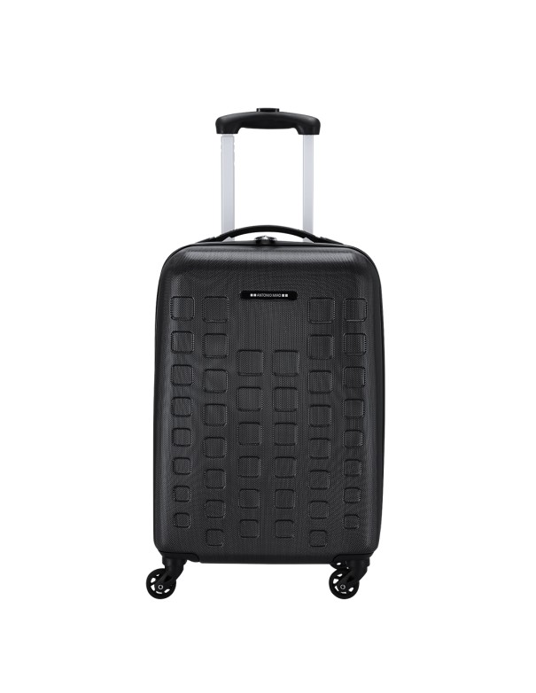 Trolley de Antonio Miró de 4 ruedas telescópicas en material ABS rígido de alta resistencia y elegante diseño de cuadros. Compartimento principal con cierre de cremallera de doble tirador y lateral con cierre de seguridad de combinación numérica. Con asa de mano de cómodo y suave tacto y logotipo de la marca en chapa exterior. Interior forrado, de doble compartimento con cintas elásticas de sujeción.