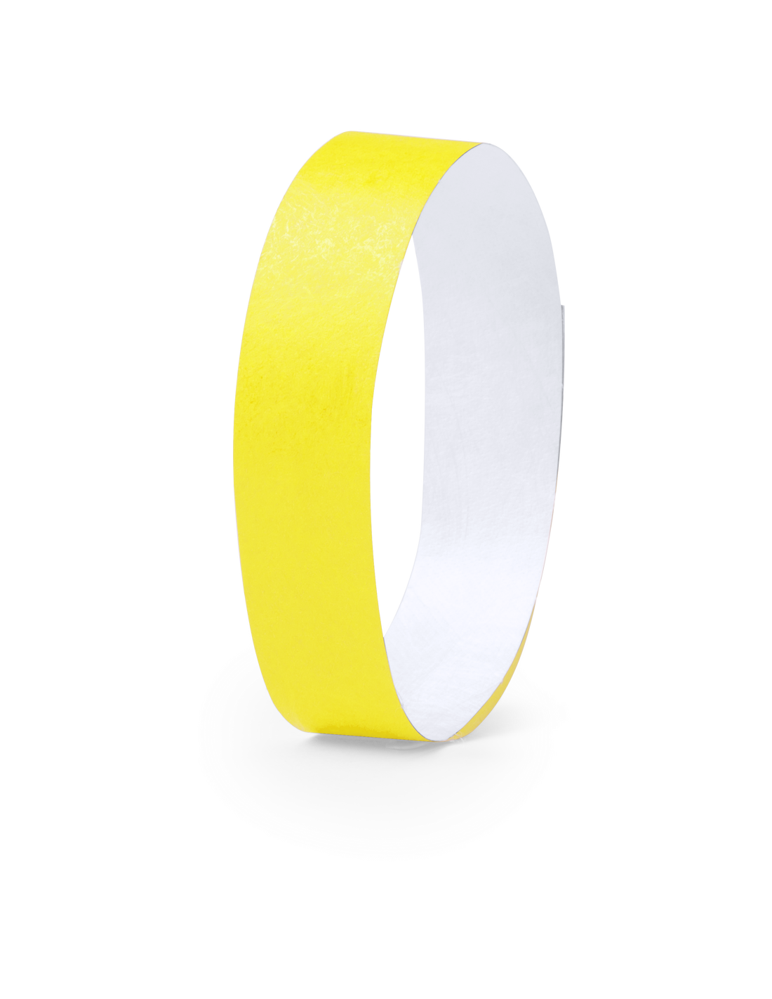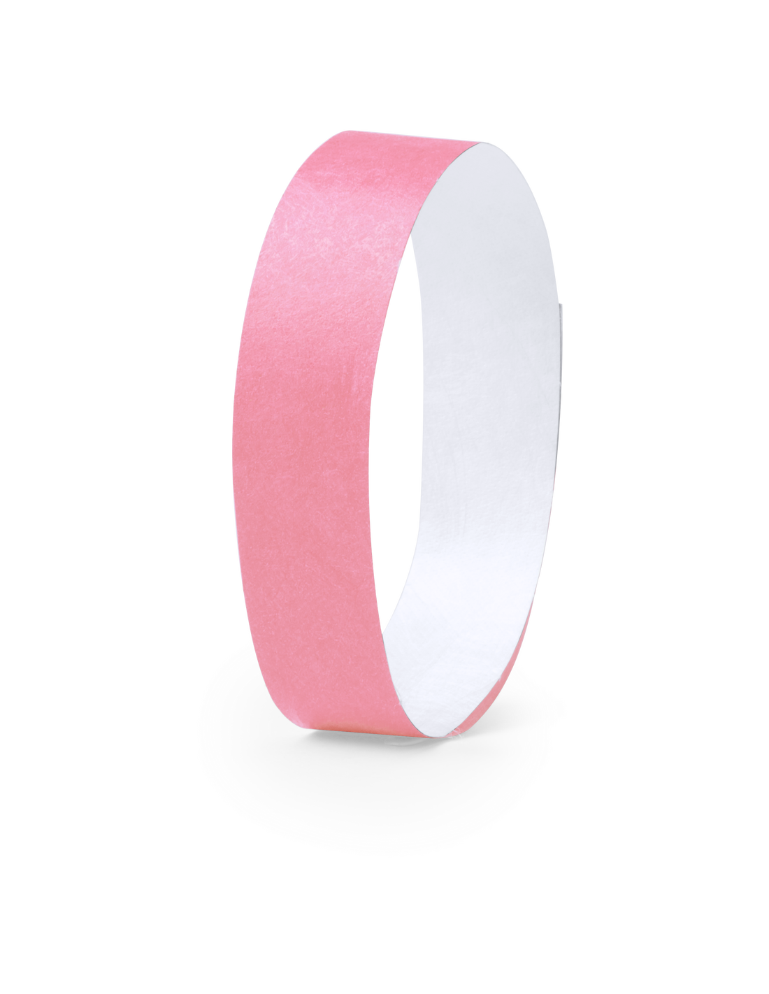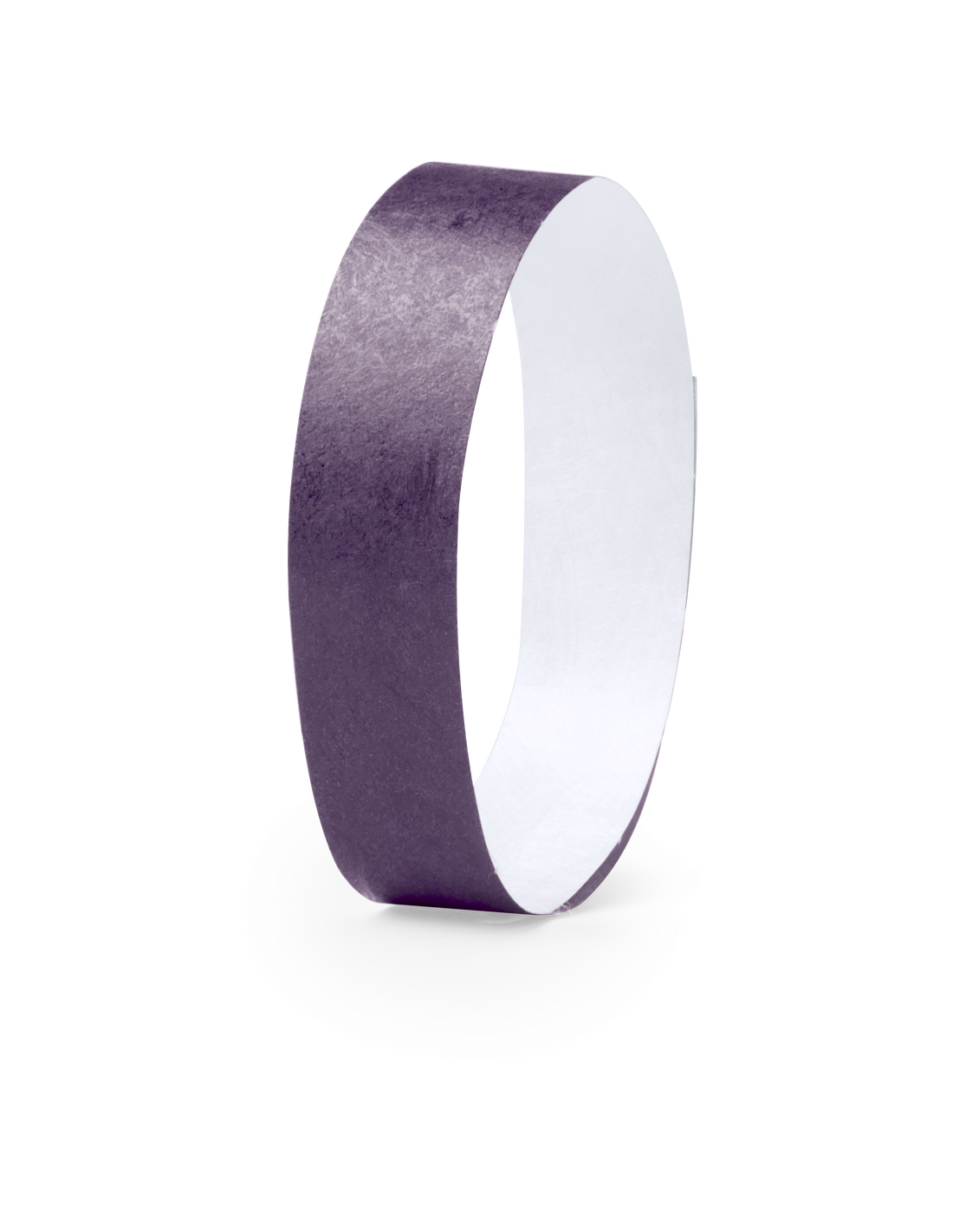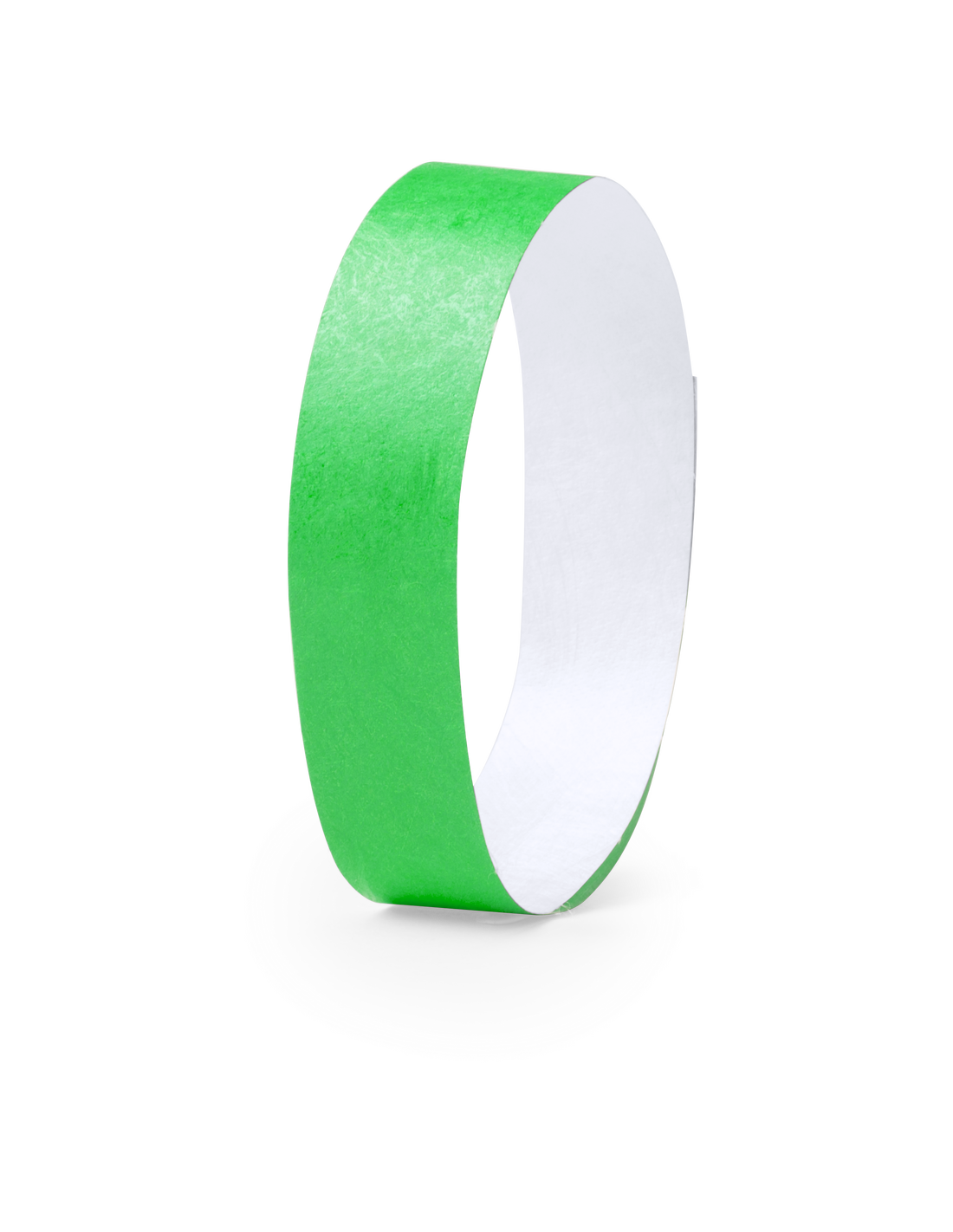 Pulsera para eventos en fibra sintética y variada gama de vivos colores. Con cierre adhesivo, resistente al agua y presentada en plancha troquelada de 10 piezas con numeración individual.