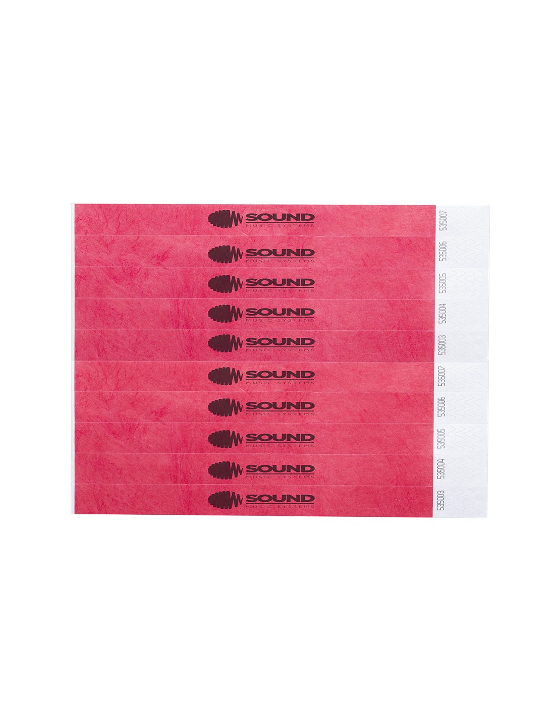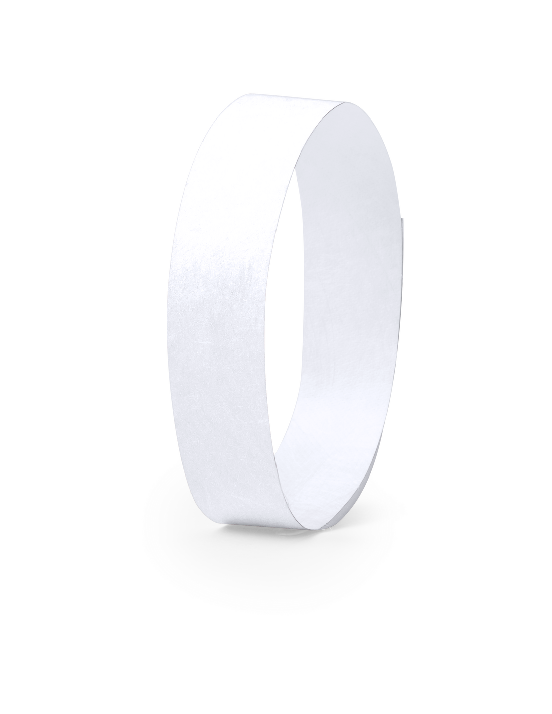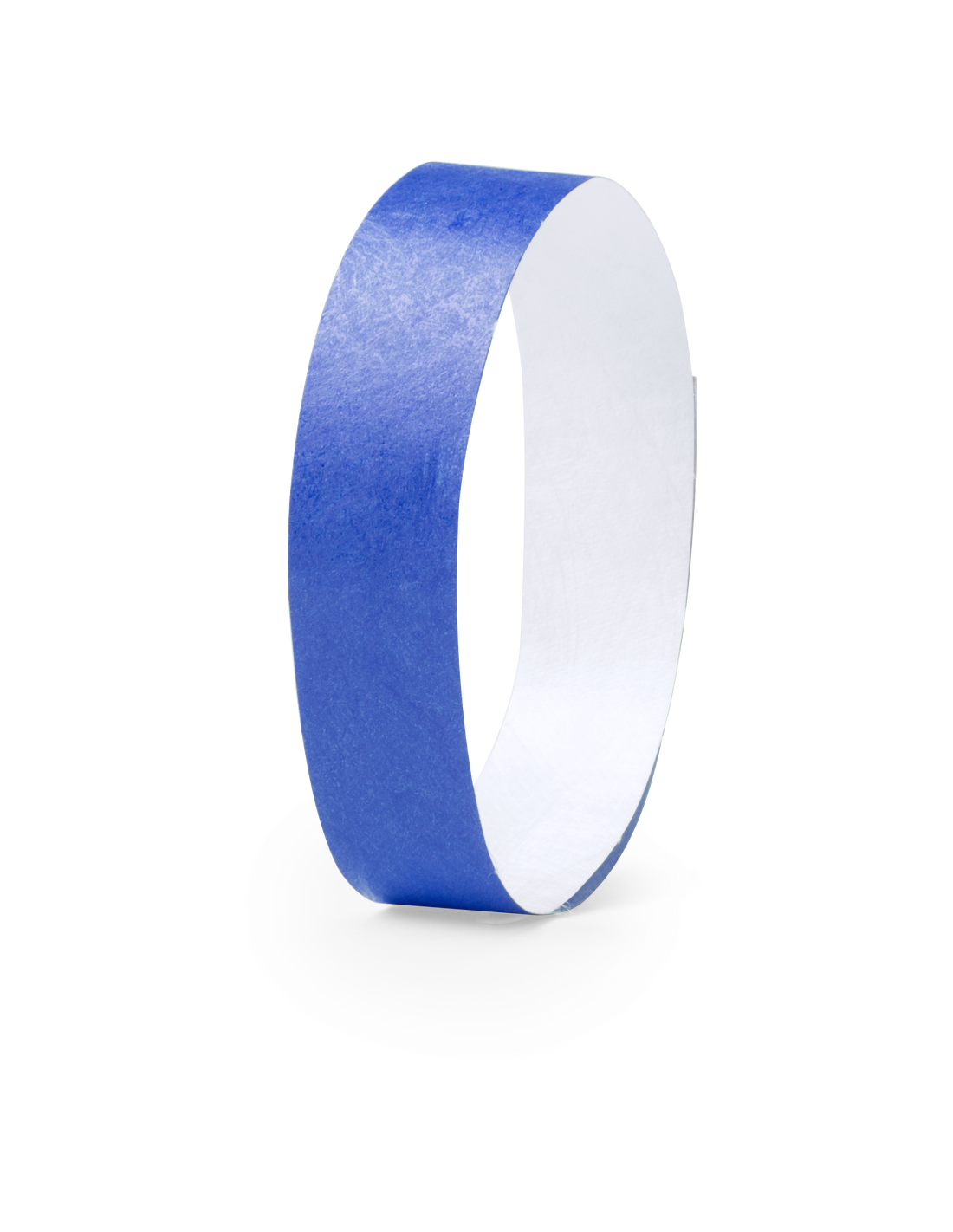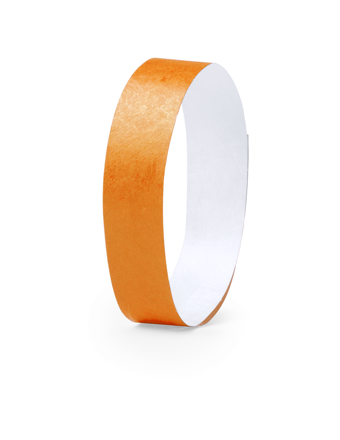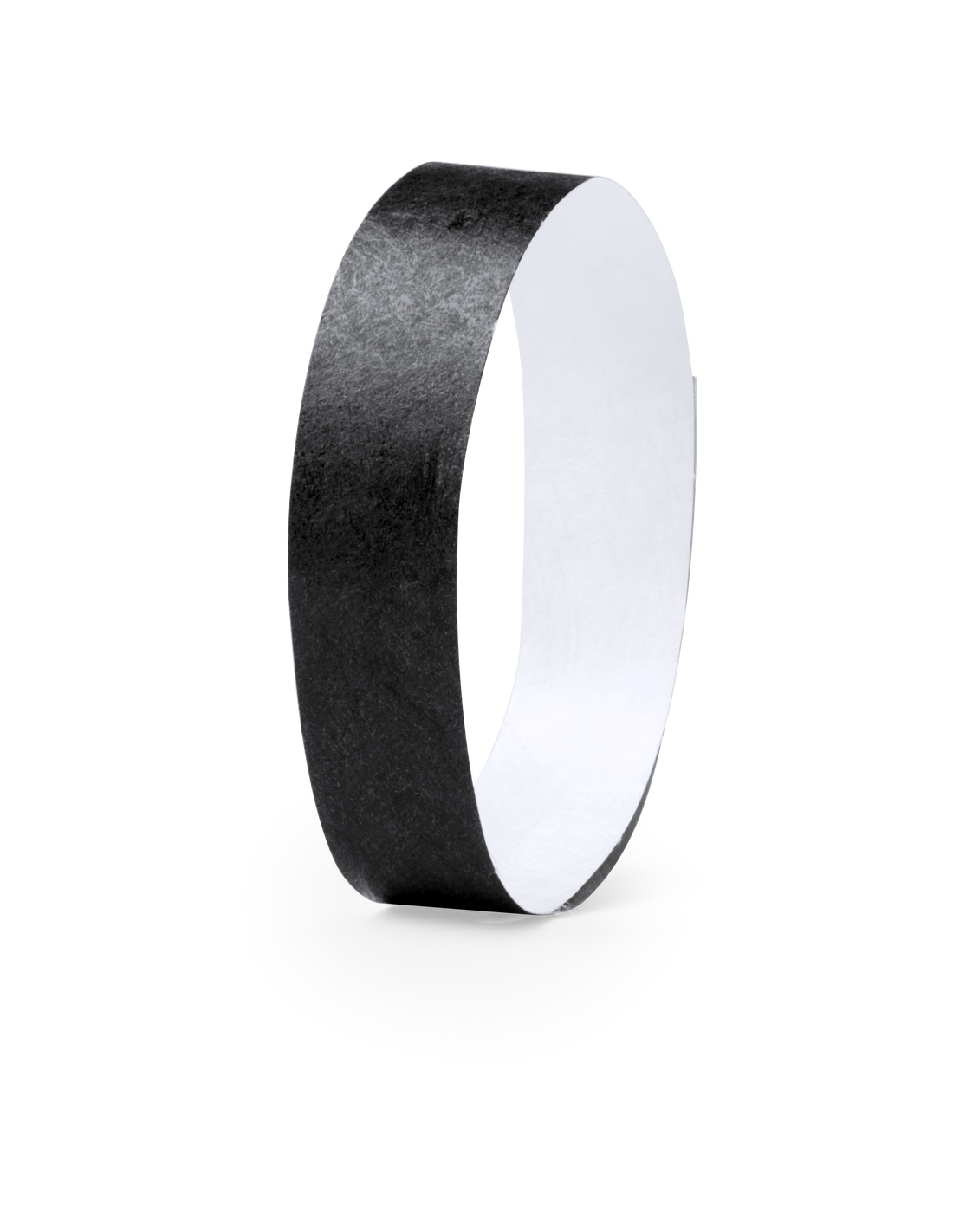 Pulsera para eventos en fibra sintética y variada gama de vivos colores. Con cierre adhesivo, resistente al agua y presentada en plancha troquelada de 10 piezas con numeración individual.