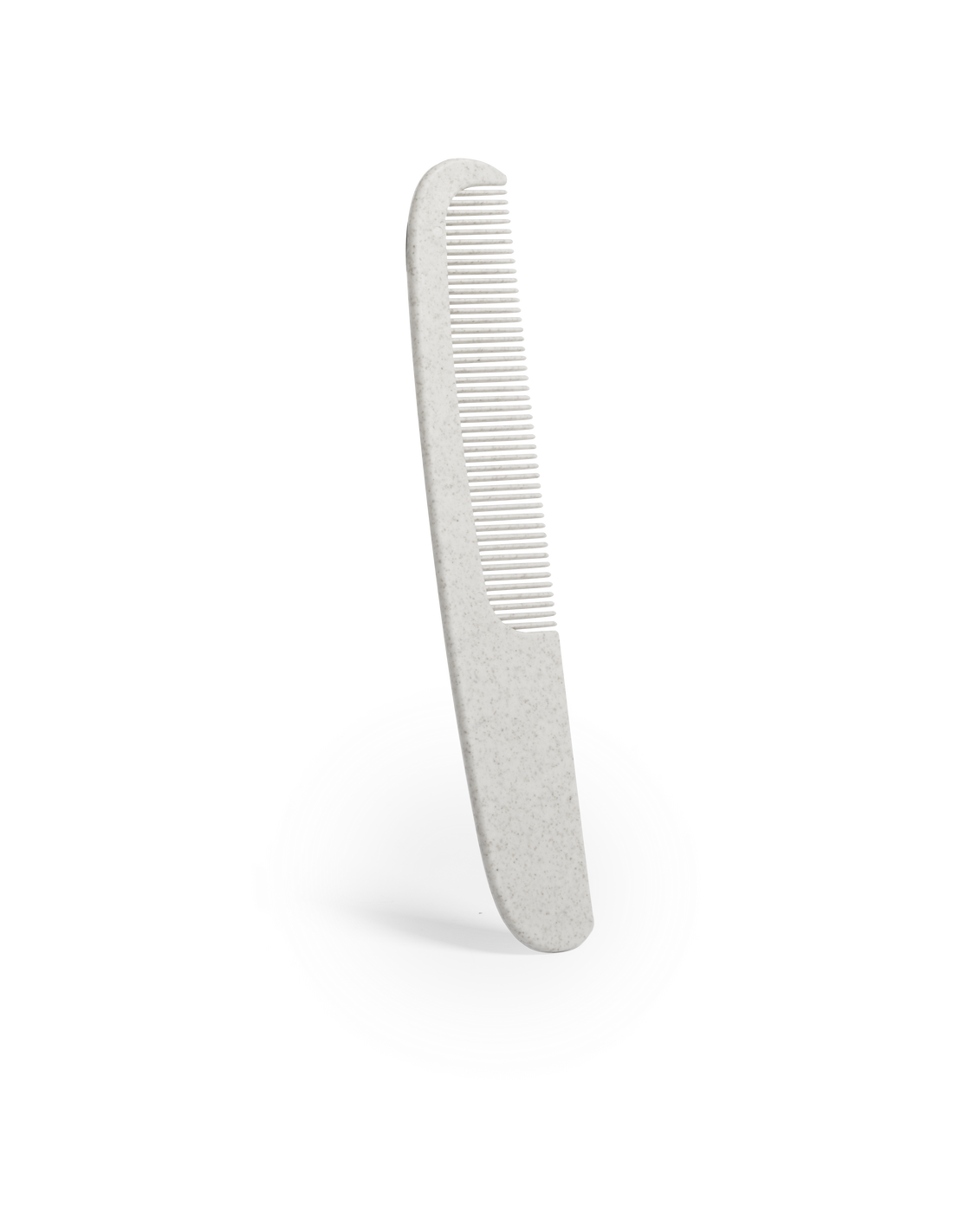Peine de línea nature en caña de trigo, para así fomentar la utilización de materias primas naturales y reducir las emisiones contaminantes. Con amplia superficie de marcaje en mango.