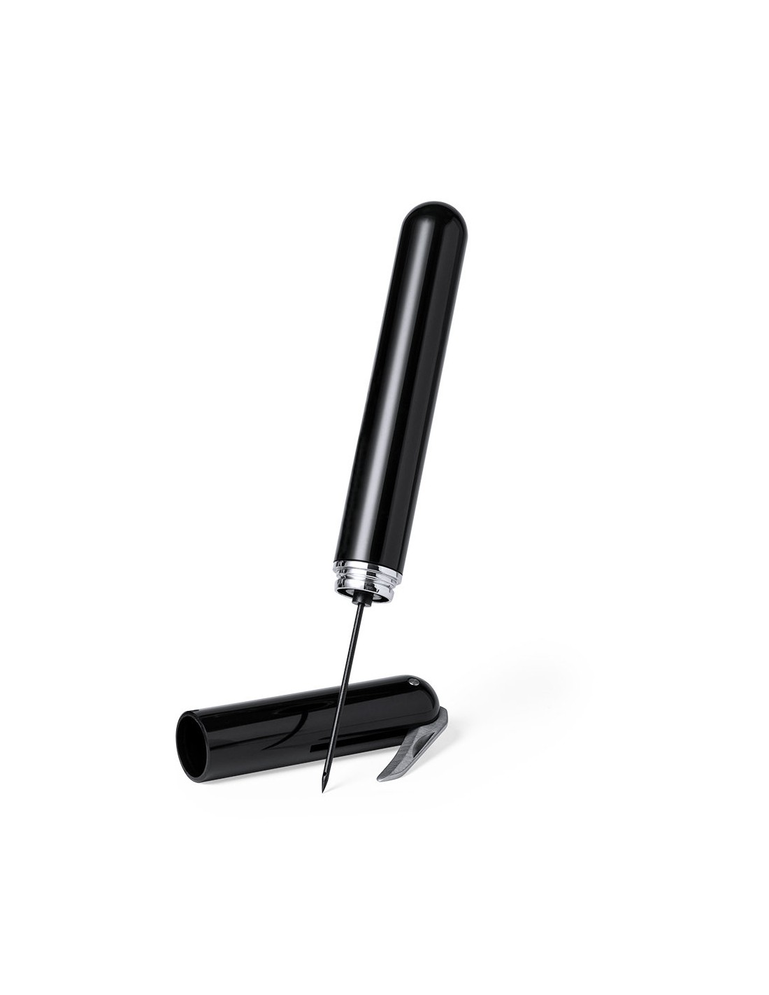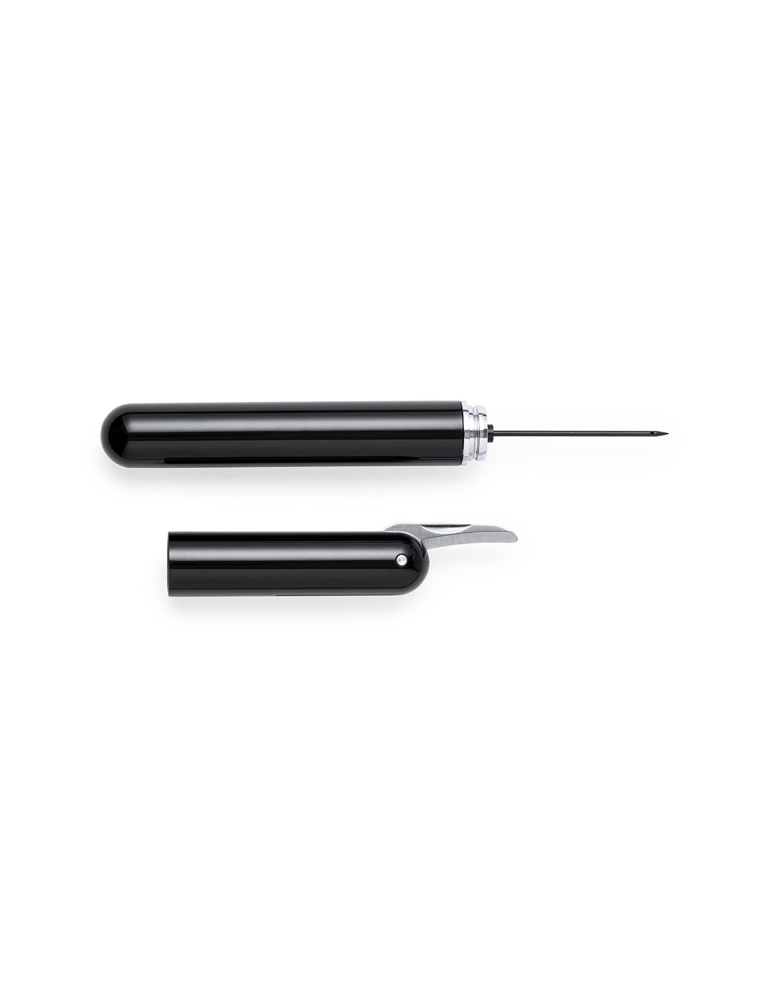 Sacacorchos con bomba de aire integrada, para una extracción del tapón de corcho fácil y segura. Fabricado en resistente material ABS y con cortacápsulas. Presentado en atractiva caja individual de diseño.