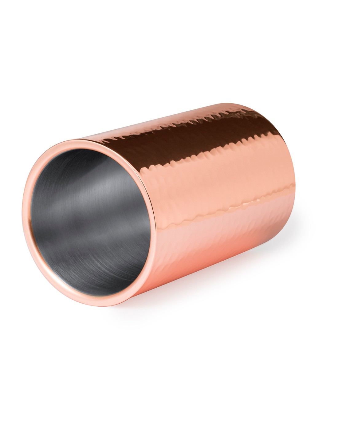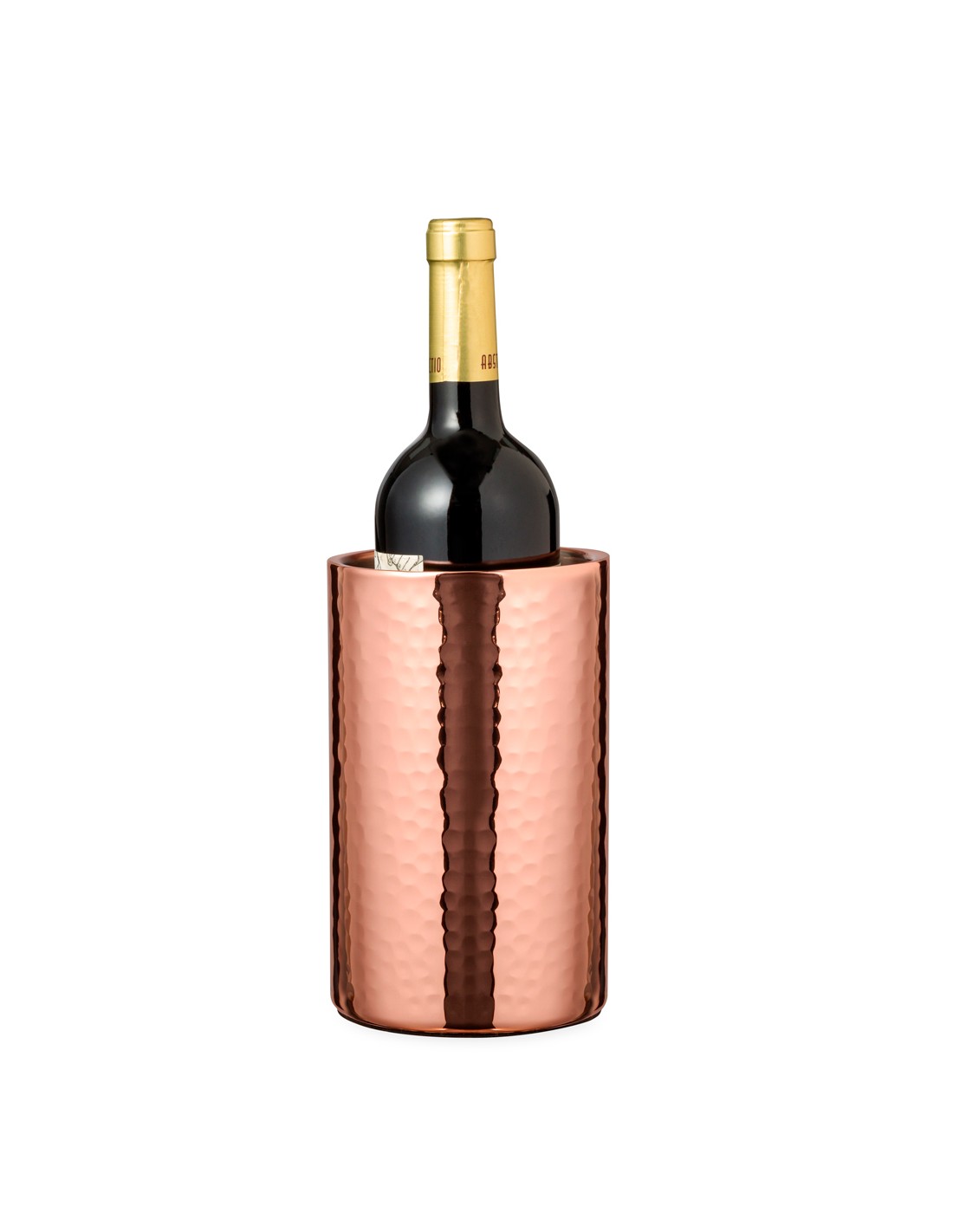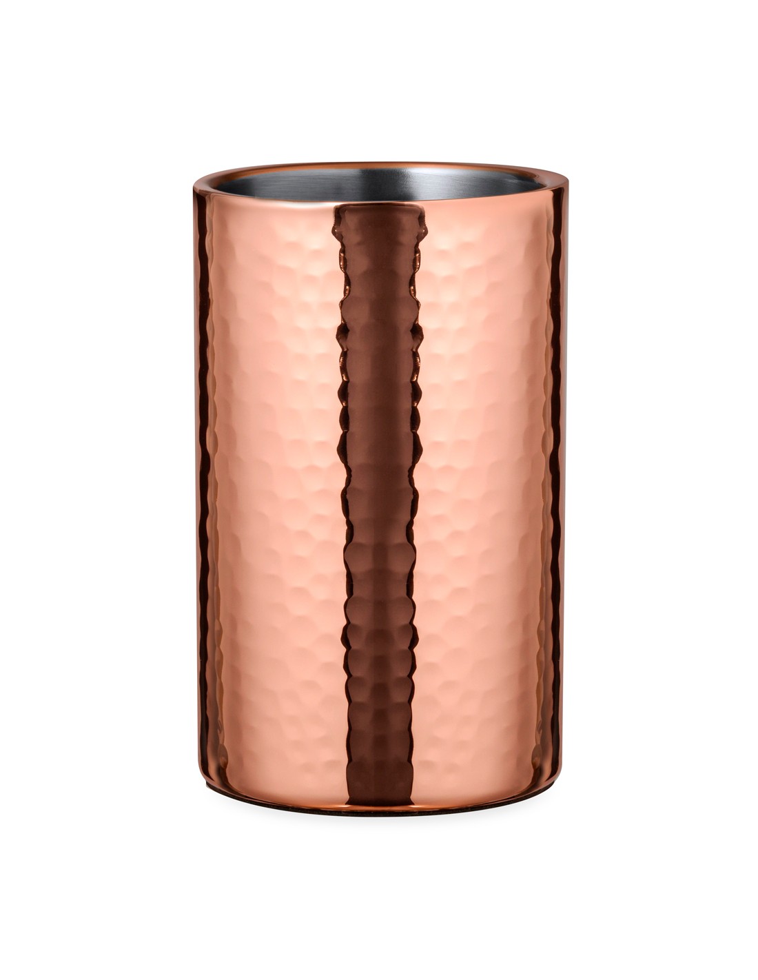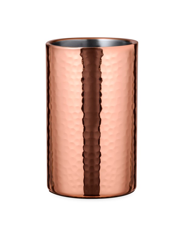 Elegante enfriador de 1 l de capacidad, fabricado en acero inox con recubrimiento de cobre galvanizado. Con original diseño en acabado brillo, es un perfecto accesorio para presentar con estilo las bebidas frías. Presentado en una exclusiva caja individual de diseño negra.