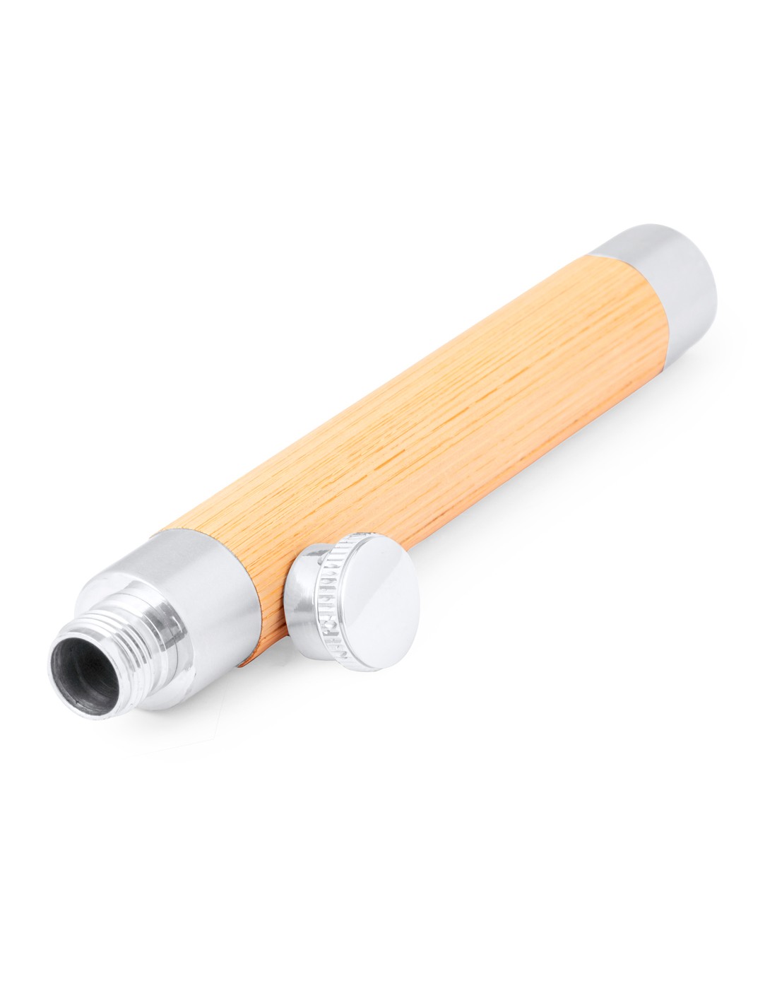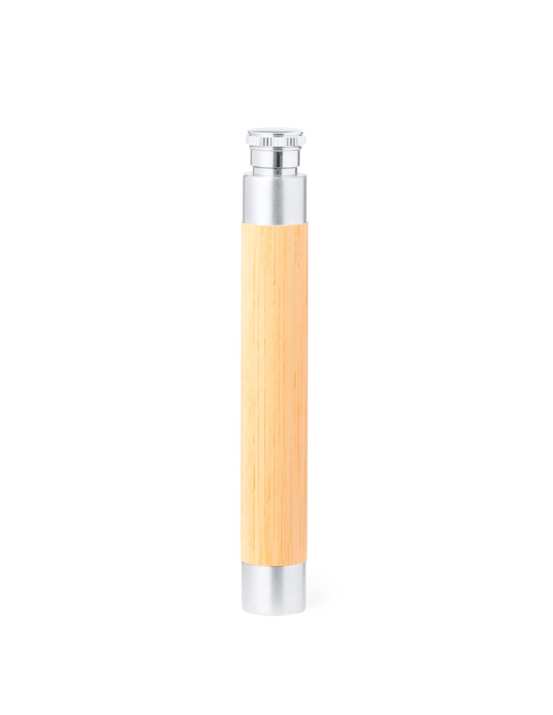Original petaca de 45 ml fabricada en bambú y acero inox. Diseño distinguido por su forma cilíndrica y su tapón a rosca. Presentada en una caja individual de diseño kraft. Materiales como el bambú fomentan la utilización de materias primas naturales, reduciendo las emisiones contaminantes. Proviene de una planta de gran resistencia y versatilidad, con crecimiento y regeneración rápidos, siendo una excelente alternativa al uso de madera tradicional.