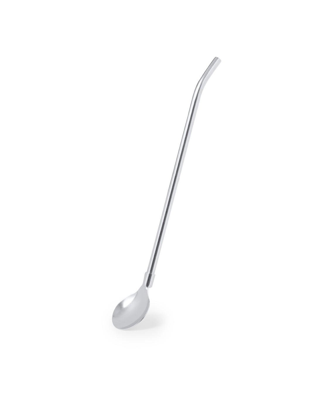 Práctico agitador con pajita en acero inox. Con diseño elegante y funcional, este accesorio es esencial para bebidas frías o calientes. Pajita integrada que permite absorber con facilidad y en el extremo inferior una práctica cucharilla. Presentado en una bolsa individual.