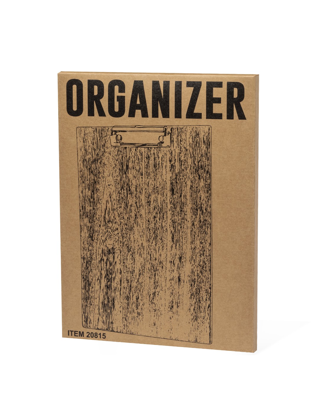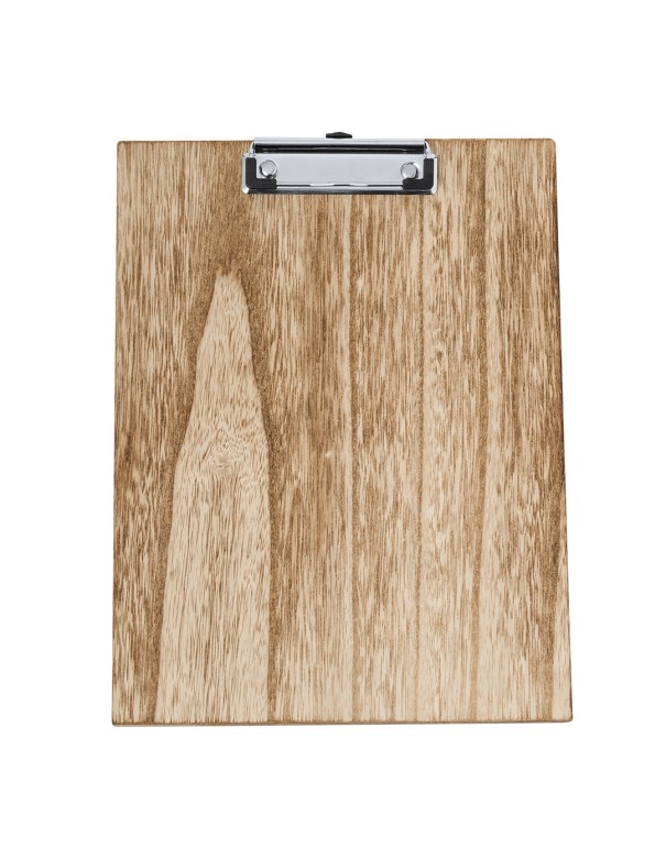 Excelente organizador en suave madera tamaño A4. Con resistente pinza para documentación y presentada individualmente en caja de diseño kraft.