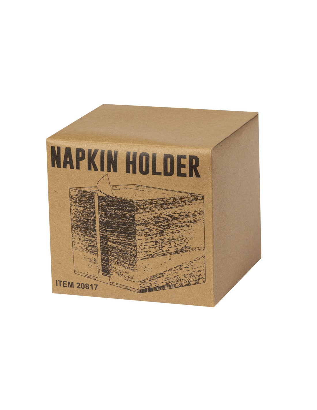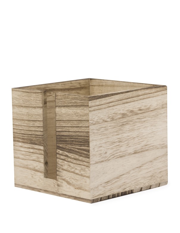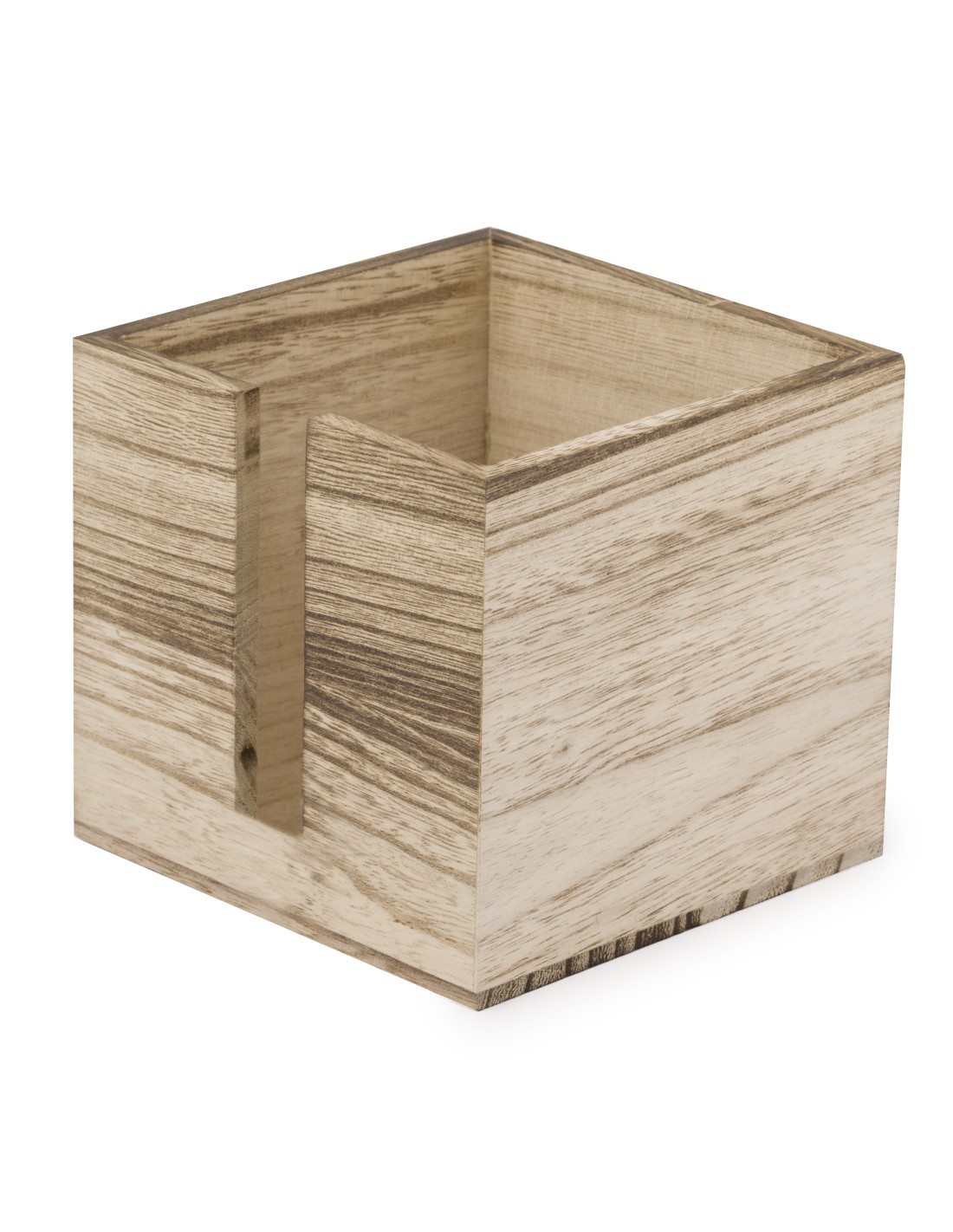 Práctico servilletero fabricado en madera. De diseño industrial, fabricado en suave madera natural con ranura en un lateral para poder coger las servillas con facilidad. Presentado en caja de diseño kraft.